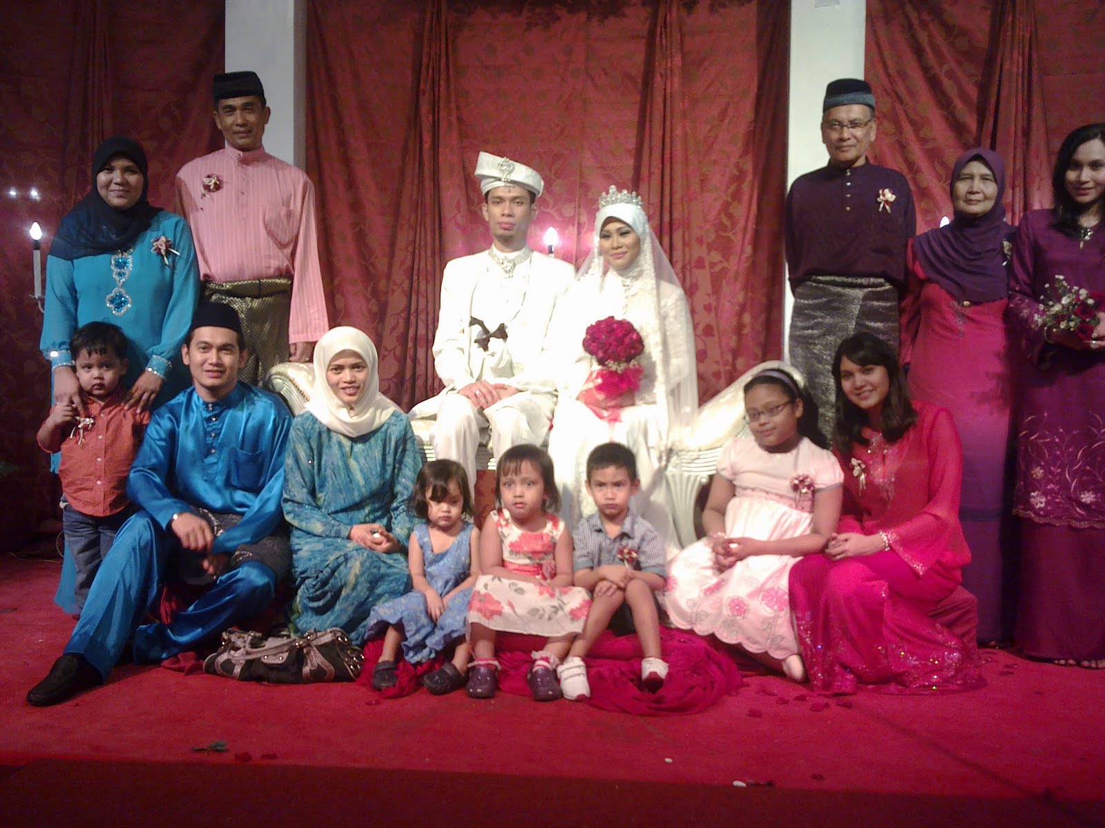 (perlu taggingkah??? oke2 sebelah kiri berdiri : kakak saya n baby michelin, my bro-in-law, pengantin, papa, mama n me. Sebelah kiri duduk : my brother, sis-in-law, Adell, Sya, Adam, Abby n my adik)